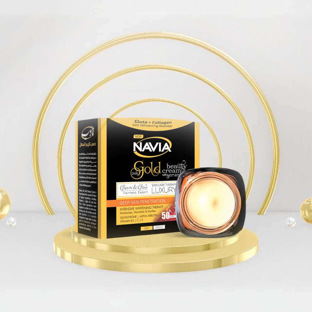 Discover the secret to radiant, flawless skin with Navia 24K Gold Beauty Cream. Our exquisite formula combines the power of glutathione, alpha arbutin, vitamin B3, and the proven effectiveness of vitamin C & E. This luxurious cream offers an intensive whitening therapy, leaving your skin visibly brighter, smoother, and rejuvenated.