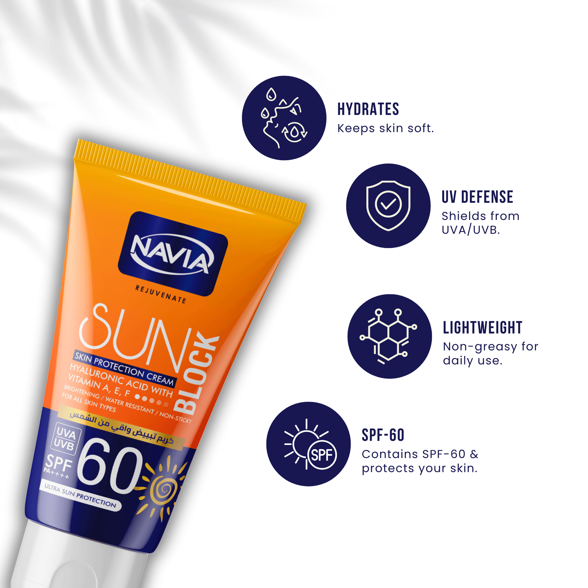 Protect your skin like an expert with Navia Rejuvenate Sunblock. Infused with SPF 60, this powerful formula shields your skin from harmful UV rays, preventing sun damage and premature aging. Keep your skin looking youthful and radiant with Navia Rejuvenate Sunblock.